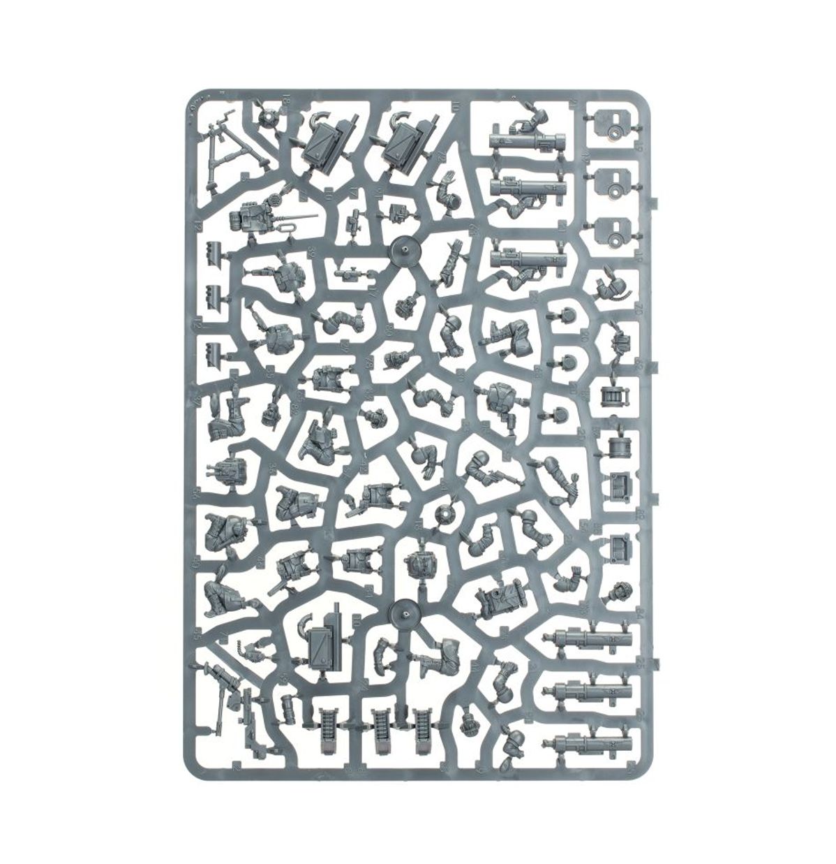 This kit comprises 127 plastic components, and is supplied with 3x Citadel 50mm Round Bases. Also included is an Astra Militarum Infantry Transfer Sheet, with 597 transfers featuring numerals, squad markings, and Cadian regimental heraldry. These miniatures are supplied unpainted and require assembly – we recommend using Citadel Plastic Glue and Citadel Colour paints.