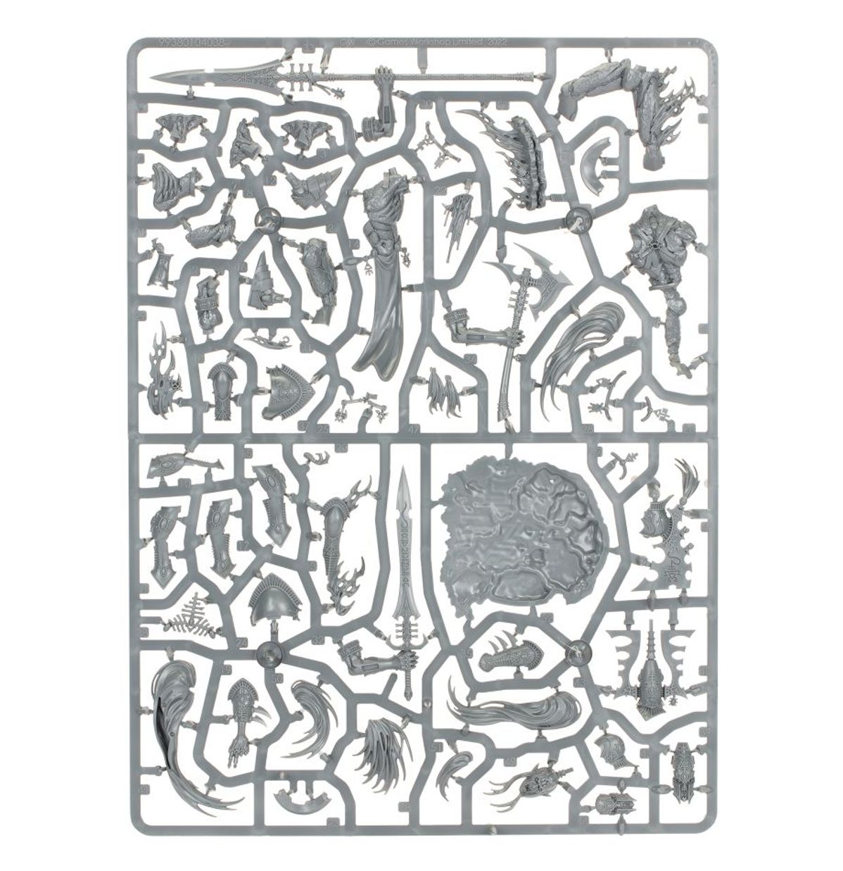 This kit builds one Avatar of Khaine, who can be constructed with a choice of three different heads – a classic helmet with plume and headdress, a more martial helm with an ornate crest, or a bare head with a wild mane and flowing topknot. The Avatar's divine weapon, the Wailing Doom, can also be built in one of three forms – a gigantic sword, a vicious axe, or a sweeping spear, each marked with eldritch runes of power.