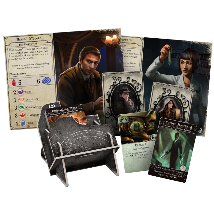 In Dead of Night, investigators explore the facets of Arkham best left unseen in the light of day. Organized crime builds a strong foothold in the city, secret cults labor for a dark master, an alien moon hangs overhead, and unknowable horrors stalk the night. This expansion includes two all-new scenarios, new encounters for every location in Arkham, new monsters and anomalies, and four new investigators to face these fresh horrors, armed with new spells, items, and allies.