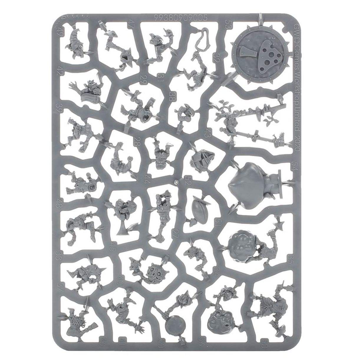 This multipart plastic kit contains all the components you'll need to build the Crud Creek Nosepickers, a Snotling team for use in games of Blood Bowl, containing 12 Snotlings, 2 Snotling Fungus Flingas, 2 Snotling Fun-Hoppas, 2 Snotling Stilty Runnas, and 2 Snotling Pump Wagons! You'll also find 2 turn counters, 2 coins, 4 Snotling-themed balls, 20x 25mm bases, and 2x 32mm Citadel Round Blood Bowl bases with holes.