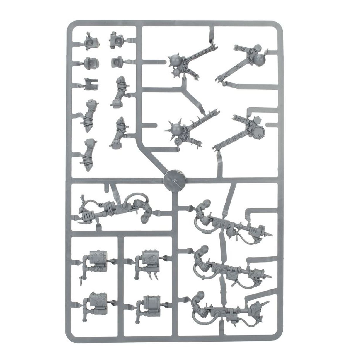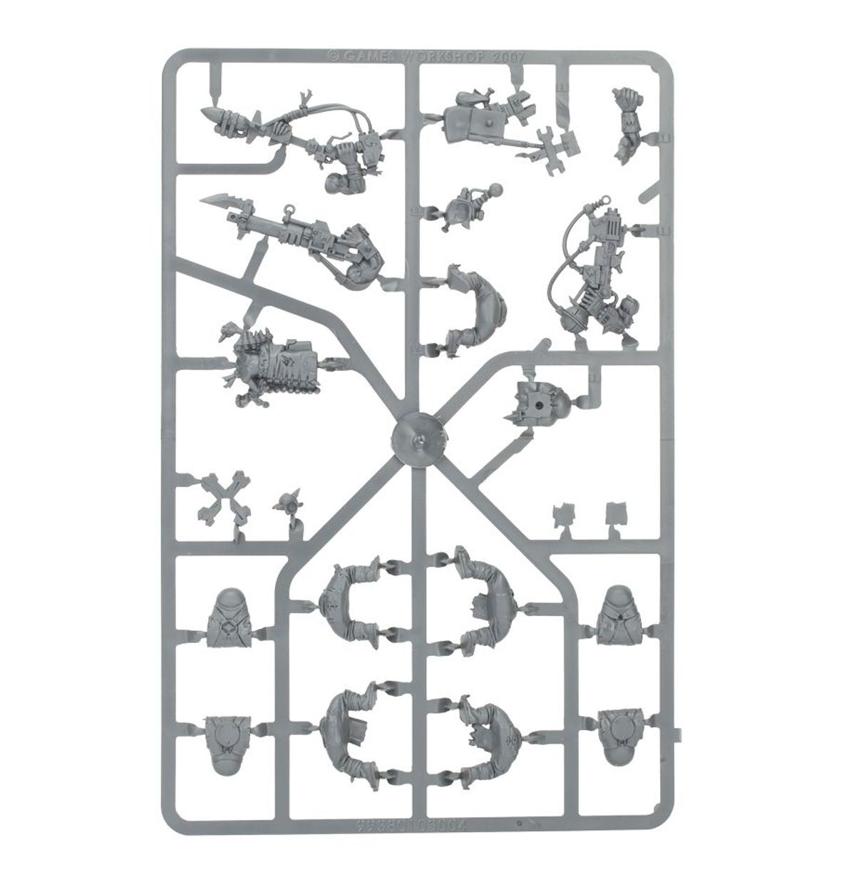 This multipart plastic boxed set contains enough components to make 5 models: either 4 Lootas or 4 Burna Boyz, as well as an Ork Mek armed with a kustom mega-blasta. Models supplied with 32 mm round bases.