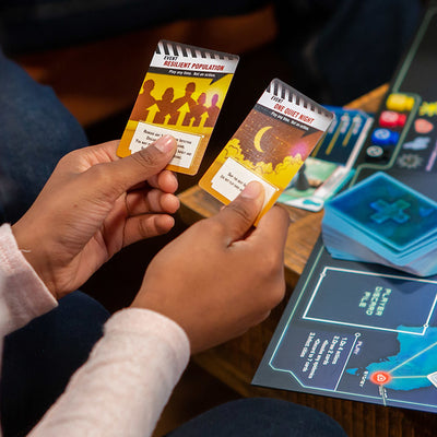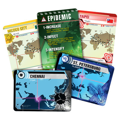 From designer Matt Leacock, Pandemic is a cooperative game of teamwork for two to four players. As members of an elite disease control team, you must keep four deadly diseases at bay. Work together as you travel the globe to treat infections while collecting the cards you need to discover a cure for each disease. But the clock is ticking as outbreaks and epidemics fuel the spreading plagues. As a cooperative game, players win or lose together. Only by working together can you keep the outbreaks in check and find the cures in time!